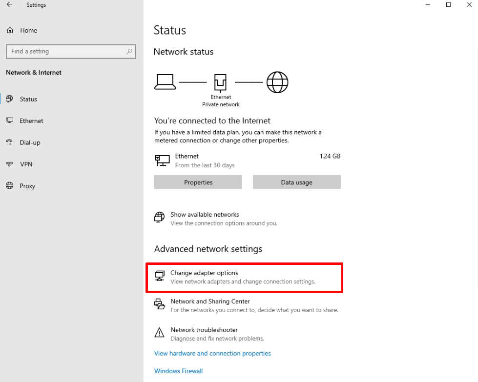 - Go to Start menu β Settings β Network & internet β Status β Change β Advanced network settings β Change adapter options.